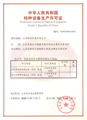 山東桂冠機(jī)械有限公司成立于2008年,注冊資金1600萬元,現(xiàn)有員工200多人,中高級(jí)技術(shù)管理人員45人,占地面積27000多平方米,生產(chǎn)車間面積12000多平方米。公司具備壓力容器產(chǎn)品的設(shè)計(jì)、制造(證書編號(hào)為:TS2237703-2025)、壓力管道安裝(證書編號(hào)為TS3837607-2025)全套壓力容器資質(zhì);通過國家ISO9001質(zhì)量管理體系認(rèn)證、美國ASME認(rèn)證、歐盟CE認(rèn)證;擁有建筑安裝機(jī)電工程專業(yè)承包叁級(jí)資質(zhì)、建筑工程施工總承包叁級(jí)資質(zhì)及對外貿(mào)易經(jīng)營出口權(quán)…